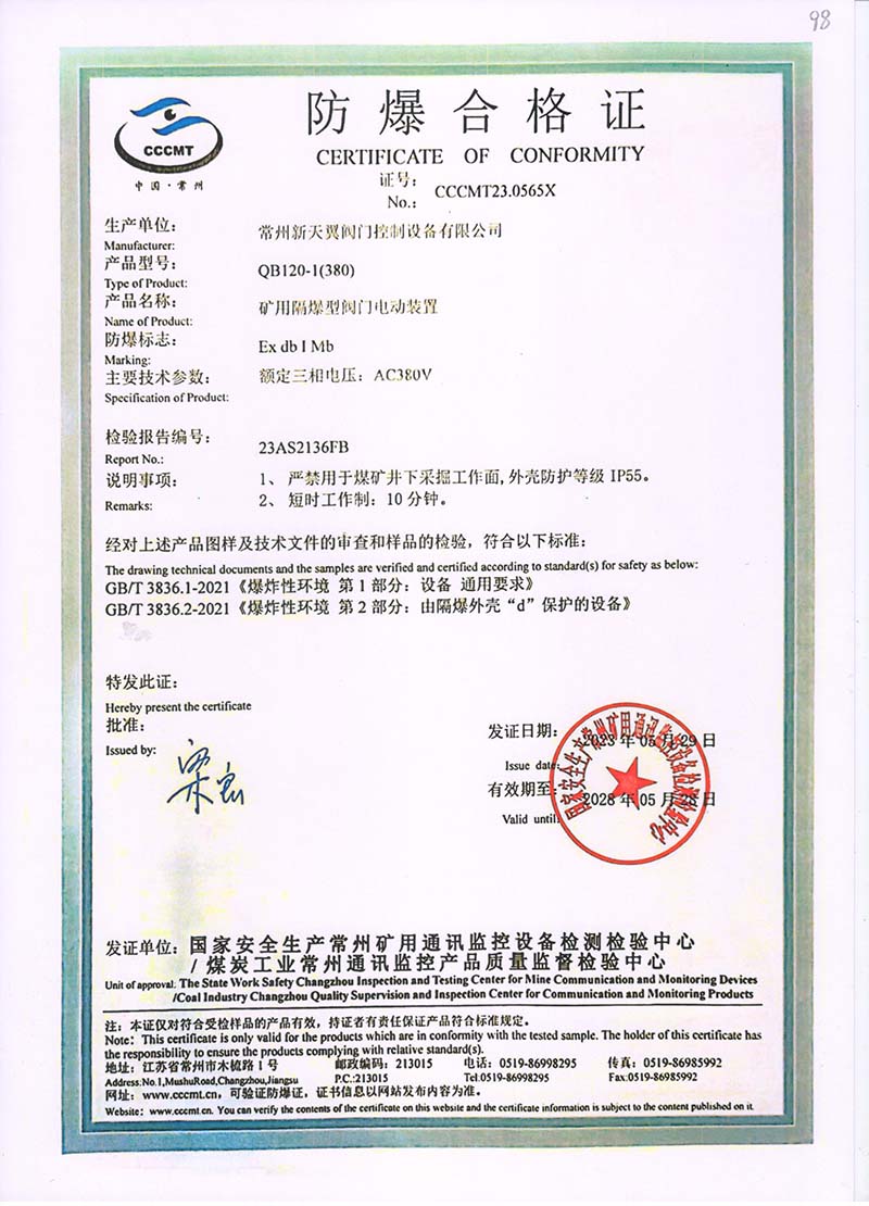 ZB20-24 200(660) 防爆合格證